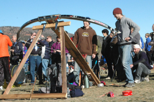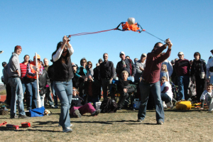 Separate prizes will be given to numerous special tossing divisions in fairness to all tossers. This means those choosing to toss their fruitcakes by hand are not competing directly with those who use a catapult, a giant slingshot or other homemade devices. O’Neil warns that onlookers need to watch for those frozen fruitcakes that are tossed straight up in the air by contestants whose timing may be off on the takeoff.